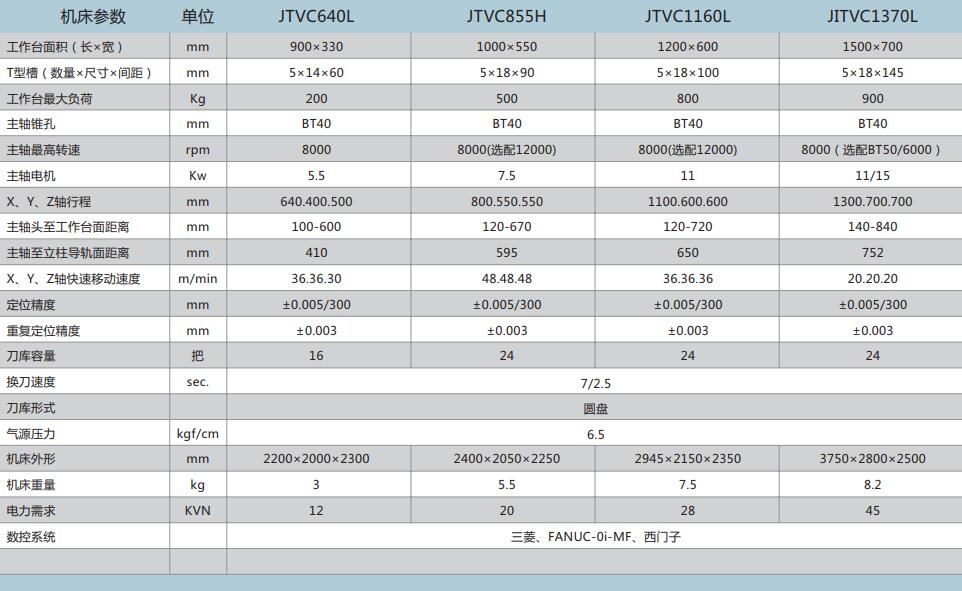 JTVC640L 855H 1160L 1370L高速立式(shì)加工中心